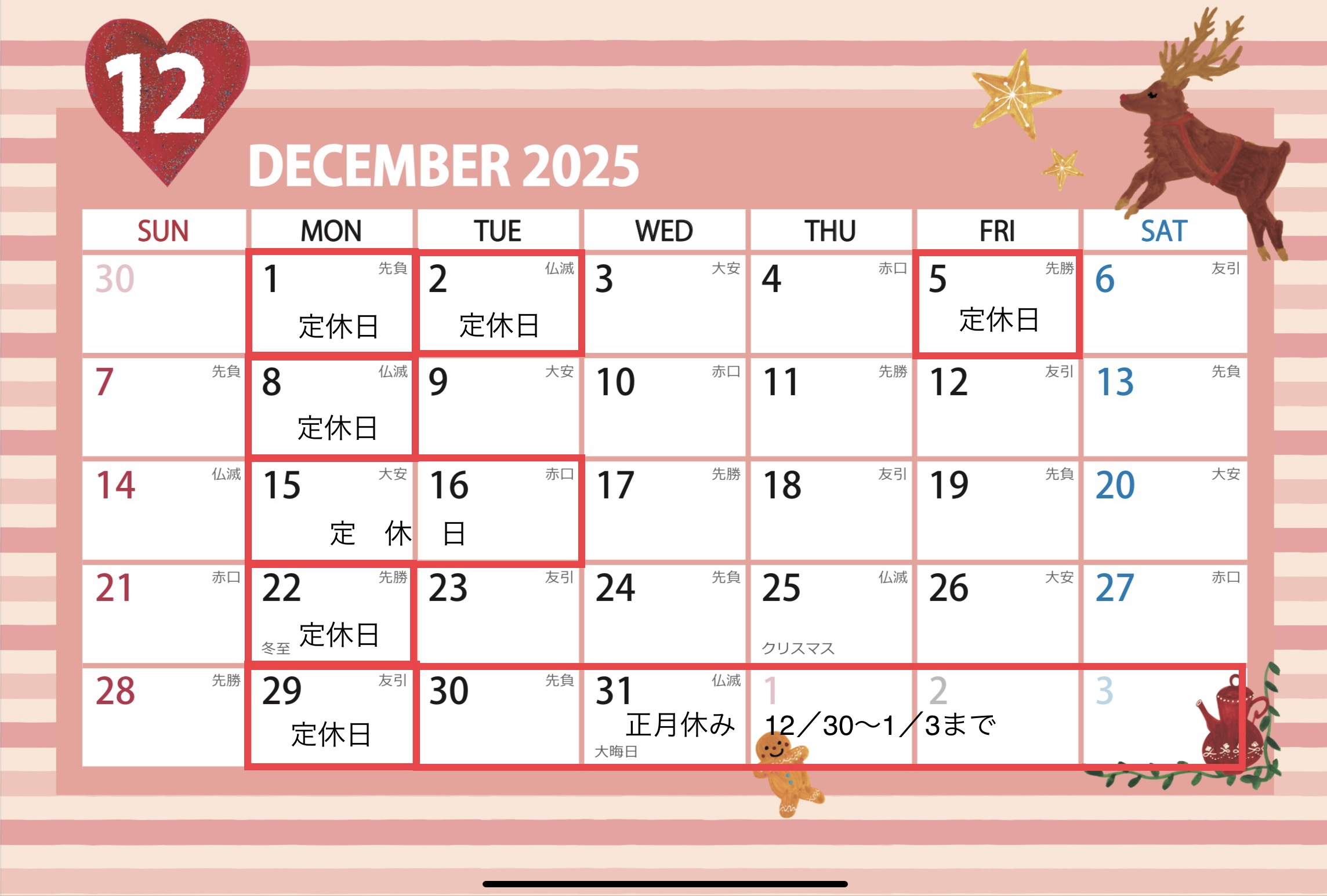 12月のお休みです。